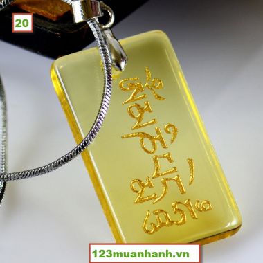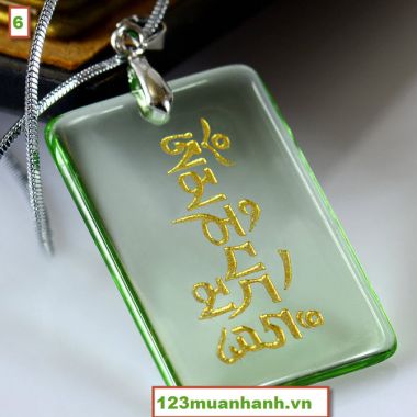 Mặt dây chuyền khắc Om Mani Padme Hum được chạm khắc thủ công. Om Mani Padme Hum là một câu thần chú tiếng Phạn là câu thần chú nổi tiếng ở thế giới, được xem là thần chú cầu Quán Thế Âm Bồ Tát (Avalokiteshvara) và là thần chú quan trọng và lâu đời nhất của Phật giáo Tây Tạng, Nếu bạn đeo chú này trên thân, hoặc cột vào tay, có sức mạnh hàng phục yêu ma, hóa giải diệt trừ mọi tai nạn đem lại sự an lành và may mắn cho bạn, thành tựu các công việc.