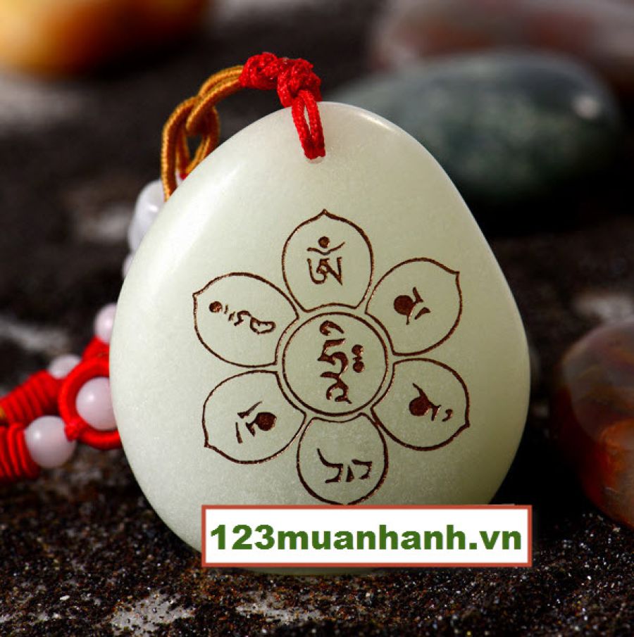 Mặt dây chuyền khắc Om Mani Padme Hum được chạm khắc thủ công. Om Mani Padme Hum là một câu thần chú tiếng Phạn là câu thần chú nổi tiếng ở thế giới, được xem là thần chú cầu Quán Thế Âm Bồ Tát (Avalokiteshvara) và là thần chú quan trọng và lâu đời nhất của Phật giáo Tây Tạng, Nếu bạn đeo chú này trên thân, hoặc cột vào tay, có sức mạnh hàng phục yêu ma, hóa giải diệt trừ mọi tai nạn đem lại sự an lành và may mắn cho bạn, thành tựu các công việc.