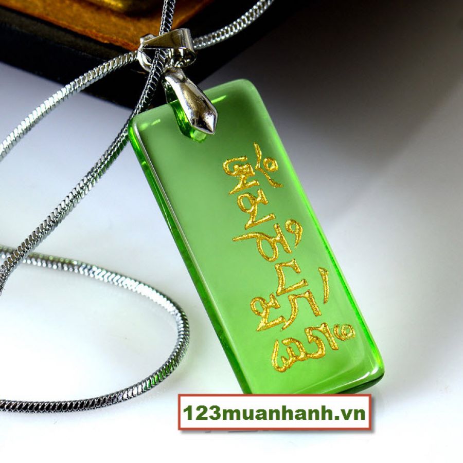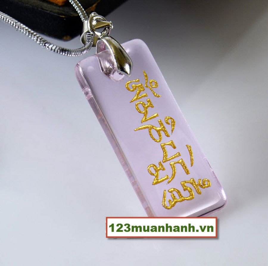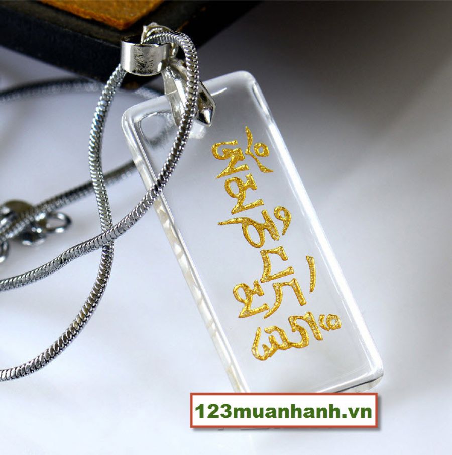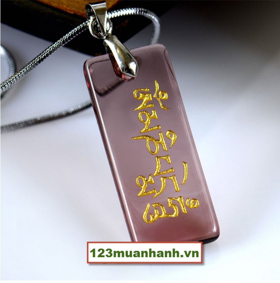 Mặt dây chuyền khắc Om Mani Padme Hum được chạm khắc thủ công. Om Mani Padme Hum là một câu thần chú tiếng Phạn là câu thần chú nổi tiếng ở thế giới, được xem là thần chú cầu Quán Thế Âm Bồ Tát (Avalokiteshvara) và là thần chú quan trọng và lâu đời nhất của Phật giáo Tây Tạng, Nếu bạn đeo chú này trên thân, hoặc cột vào tay, có sức mạnh hàng phục yêu ma, hóa giải diệt trừ mọi tai nạn đem lại sự an lành và may mắn cho bạn, thành tựu các công việc.