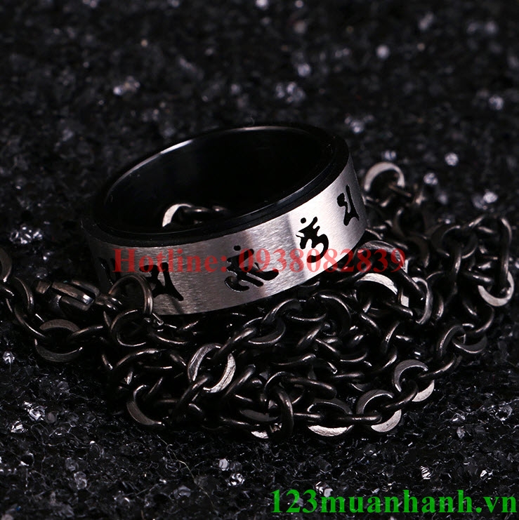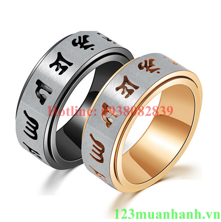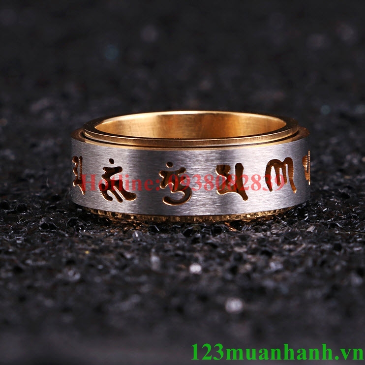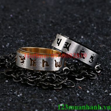 Nhẫn om mani padme hum xoay chất liệu titanium